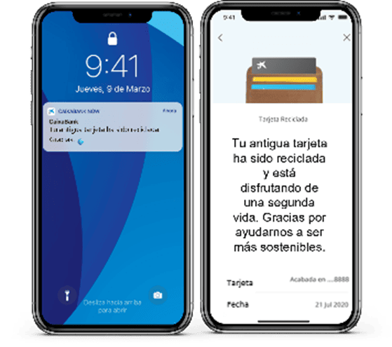 This process is made possible thanks to our customers, who hand in their old card at CaixaBank branches. Their gesture starts the recycling process and allows the material to be given a second life, taking a step together towards a more sustainable model.